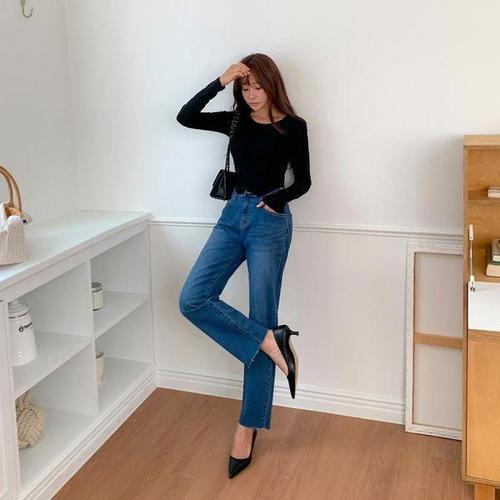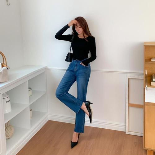 에브리룩 사선 절개 통배기 스판 뒷밴딩 데님 청바지(M-XL)