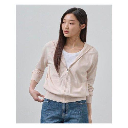 [빈폴레이디스]코튼 혼방 후드 집업 카디건 - 베이지 (BF445AC06A)