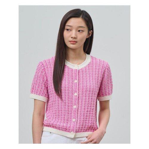 [빈폴레이디스]서머 트위드 라운드넥 반소매 카디건 - 핑크 (BF445AC01X)