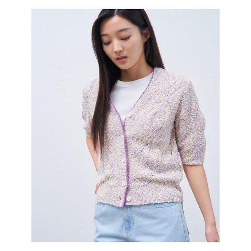 [빈폴레이디스]컬러 믹스 부클 V넥 반소매 카디건 - 라벤더 (BF435AC02T)