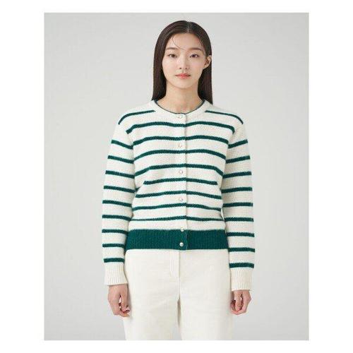 [빈폴레이디스]폭스 혼방 스트라이프 라운드넥 카디건 아이보리 (BF3X5AC010)