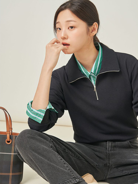 [빈폴레이디스] 텍스쳐 하프 집업 티셔츠네이비 (BF5841C41R)