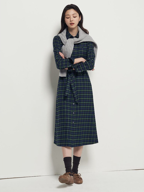 [빈폴레이디스] 타탄체크 셔츠 원피스그린 (BF5X71C03M)