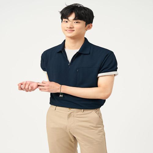 [빈폴멘]젠틀테크 반집업 칼라넥 반소매 티셔츠 - 네이비 (BC5342C63R)