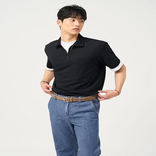 [빈폴멘]젠틀테크 반집업 칼라넥 반소매 티셔츠 - 블랙 (BC5342C635)