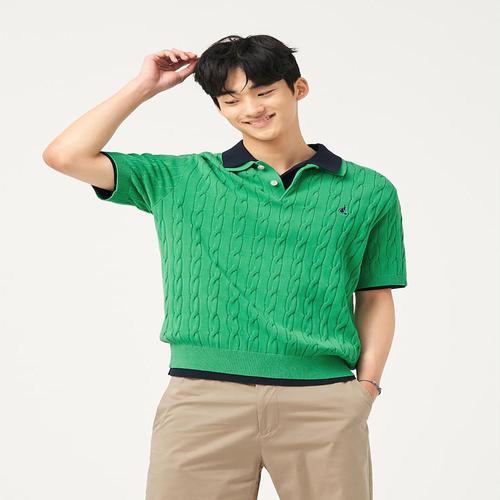 [빈폴멘][빈폴솔솔니트] 케이블 칼라넥 니트 - 애플 그린 (BC5451C40K)