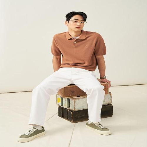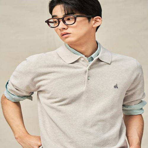 [빈폴멘][빈폴솔솔니트] 코튼실크 칼라넥 니트 - 옐로이시 브라운 (BC5251C21B)