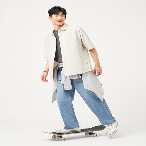 남자 여름 루즈 오버핏 릴렉스드 청 데님 반팔 셔츠 남방