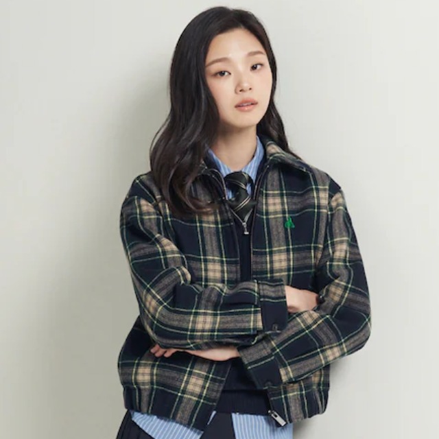 [빈폴키즈]클래식 약기모 체크 셔츠형 원피스&헤어슈슈 세트 그린(BI4871G03M)