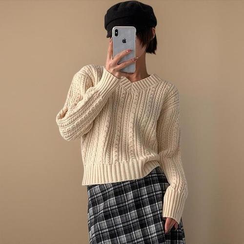 [다잇템][다잇템] 여성용 스웨터 V넥 FW 빨간 니트 꽈배기 데일리웨어_24170805_588872