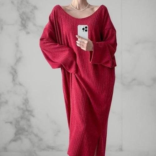 [신상오픈런]여성 빅사이즈 오프숄더 골지 롱드레스 빨강