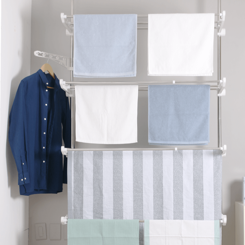 기둥접이식빨래건조대 폭 조절 가능 벽 접이식 공간 활용 원룸 빨래 건조대