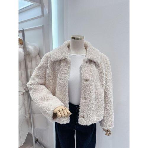 [브리치] / 피닝 뽀글이 퍼 하프 코트 자켓