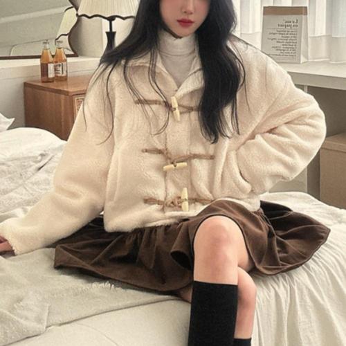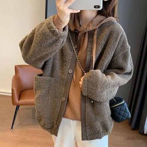 여성 떡볶이 단추 뽀글이 양털 자켓 HH-E70