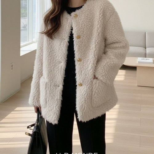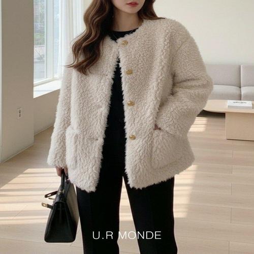 [유아몽드]유아몽드 여성 베이지 부클 뽀글이 자켓 라운드넥 골