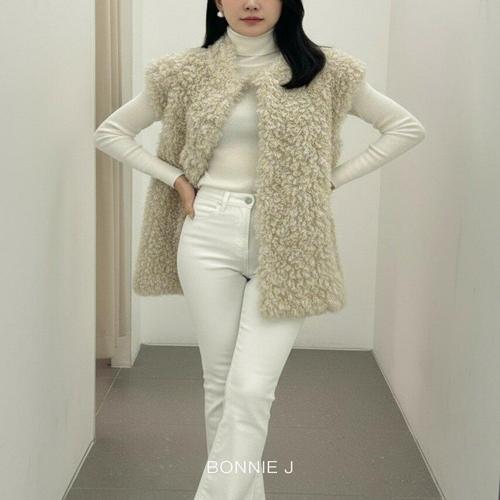 [유아몽드]부클 뽀글이 민소매 자켓 여성 퍼 베스트 롱 루즈핏