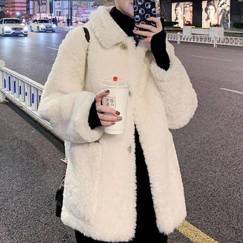 여성 양털 뽀글이 떡볶이 코트 겨울 캐주얼 아우터
