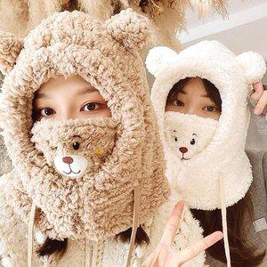 곰돌이 후드담요 뽀글이 블랭킷 곰 캐릭터 겨울 모자 망토 무릎 담요