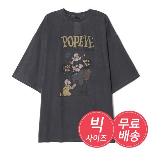 남자 오버핏 피그먼트 뽀빠이 반팔 티셔츠 AC-TSH-Q020-차콜