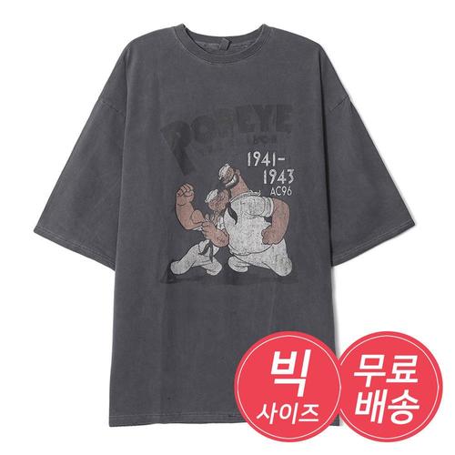 남자 오버핏 뽀빠이 피그먼트 반팔티 AC-TSH-Q020