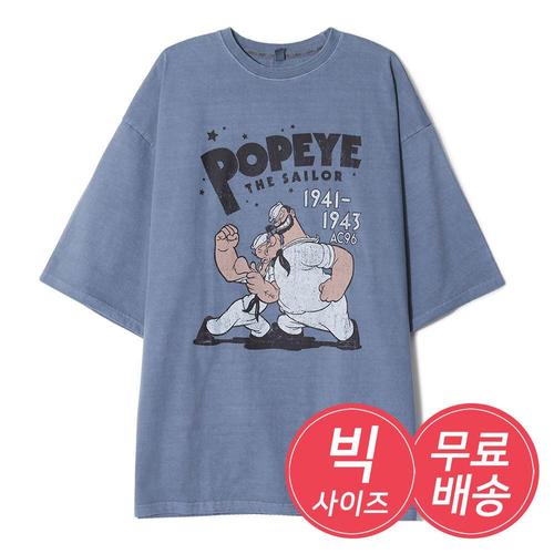 남자 오버핏 뽀빠이 피그먼트 반팔티 AC-TSH-Q020-블루