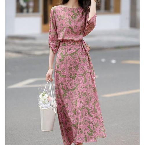 [패션시그널]사이드리본끈벨트 플라워 롱원피스 4201E3