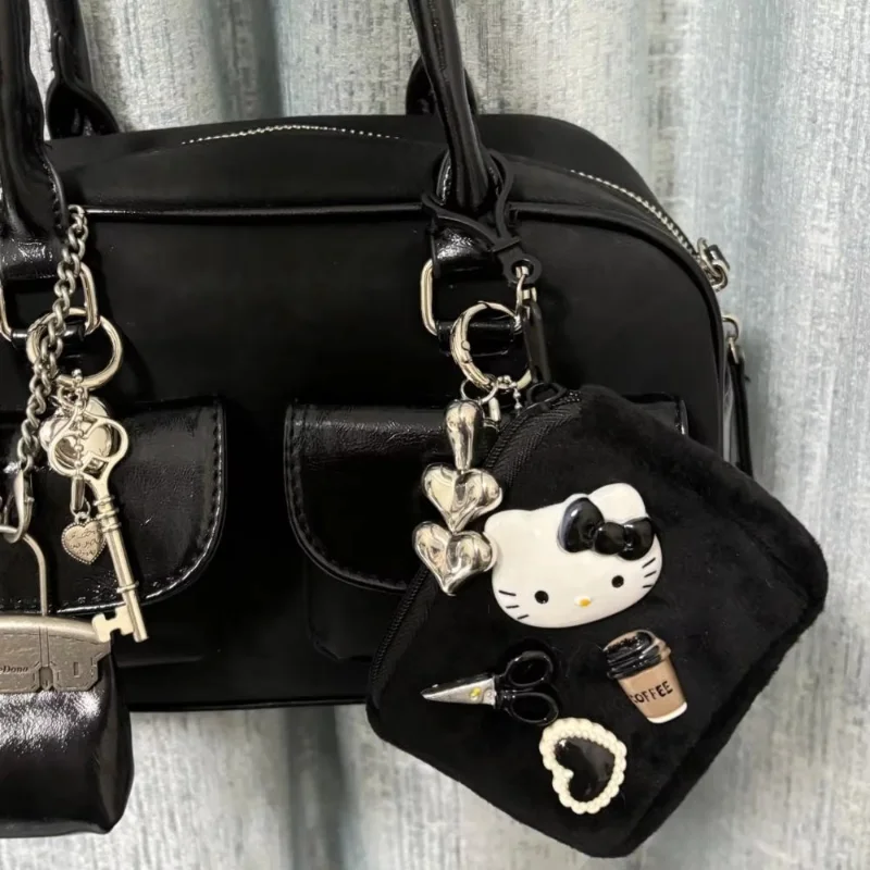 산리오 블랙 스킨 헬로키티 동전 지갑 만화 애니메이션 휴대용 카드 가방 귀여운 창의적인 미니 인형 보관 가방 펜던트 장식