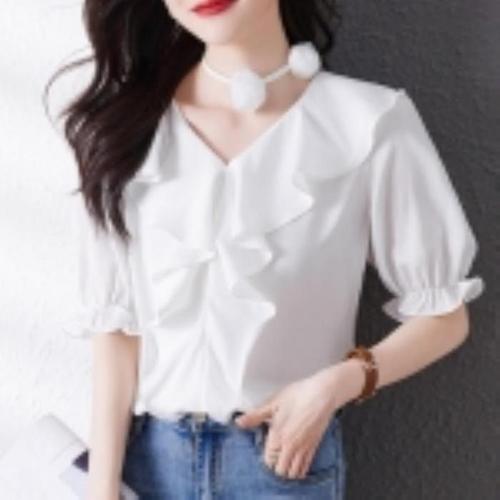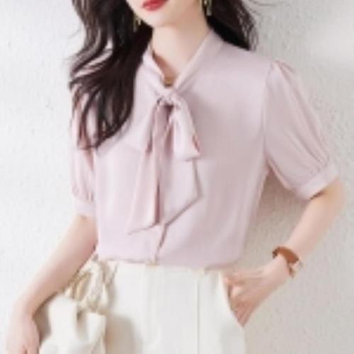 [다잇템]여자 반소매 SS 벌룬 새틴 소매 리본 블라우스 (10444705A)
