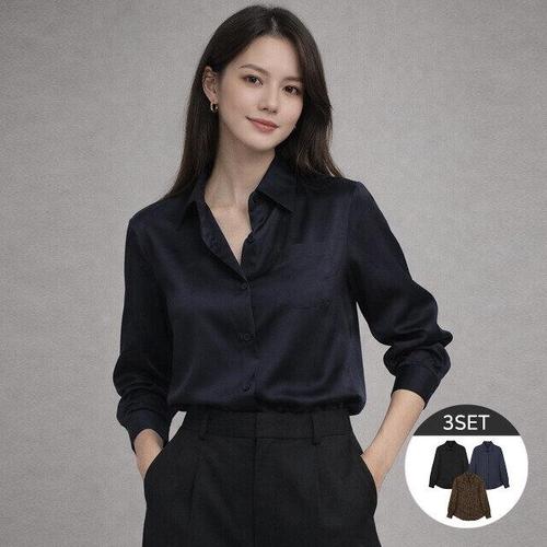 [엘루아][엘루아] 스탠 카라 새틴 블라우스 3종 세트