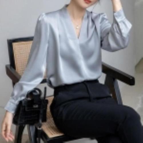 [블랙퀸] 새틴 노카라 브이넥 블라우스 blk004413