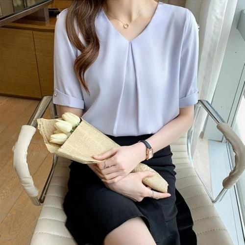 [다잇템]여성 새틴 들러리룩 핀턱 V넥 잔주름 블라우스 (11030291A)