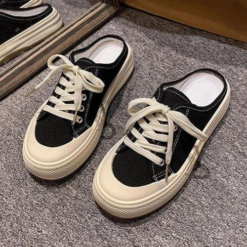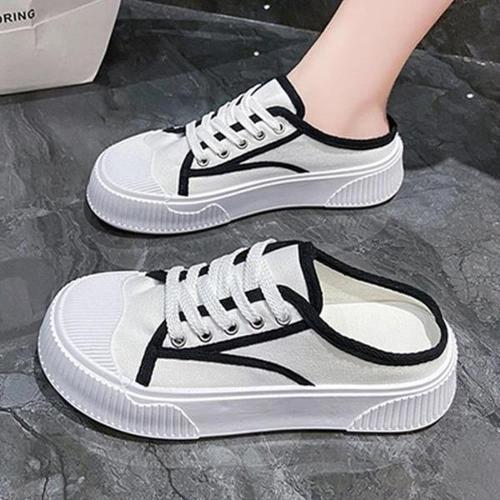 [QNRU203X]4컬러 배색 스니커즈 블로퍼 캔버스화 뮬샌들