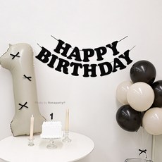 파티몬 해피벌스데이 생일 파티 가랜드 블랙 베이지 풍선 9P 스탠드 발레코어 리본 소품, 1개, 해피벌스데이 블랙베이지세트 - 1
