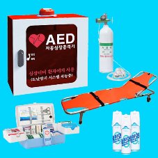 , 제세동기, 구급약품, 들것, 산소캔, 마네킹, 구급약품함