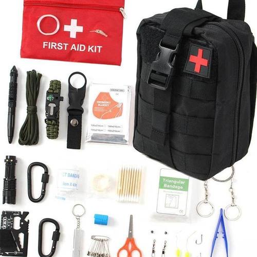 응급 처치 장비와 용품이 포함된 긴급 생존 키트 - EDC Go 버건아웃 백 캠핑 야외용 홈 백팩 전술 군용 몰 파우치 등급 남성 여성용 선물