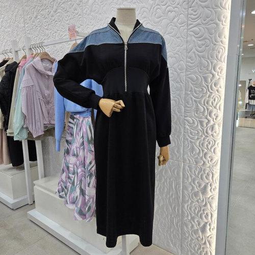 [샤틴]데님 배색 지퍼 원피스 (S251K651)_DG