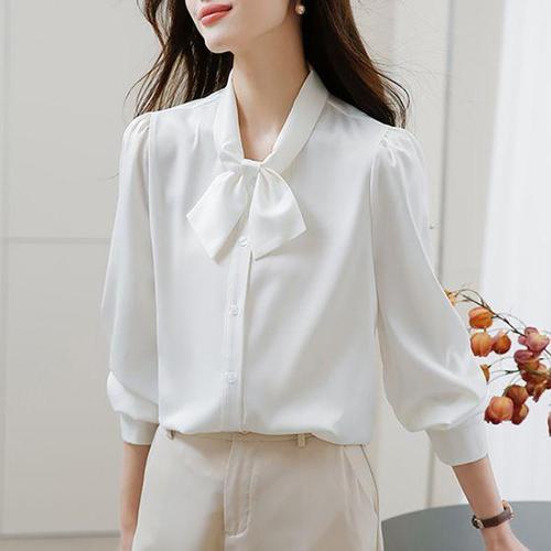 뷔스티에 샤틴 여성 정장 오피스 블라우스 긴발티