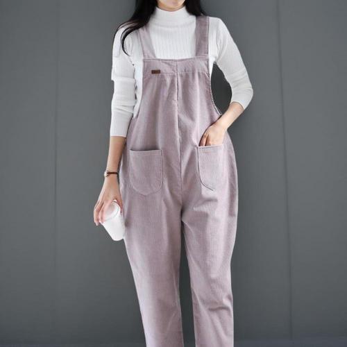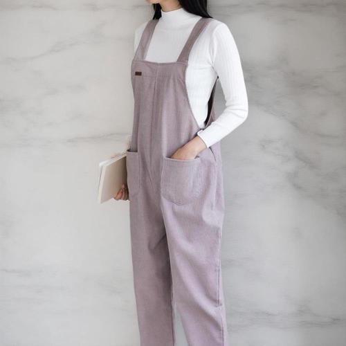 [신상오픈런]여성 겨울용 배기 스타일 투포켓 멜빵 기모 골덴 점프수트