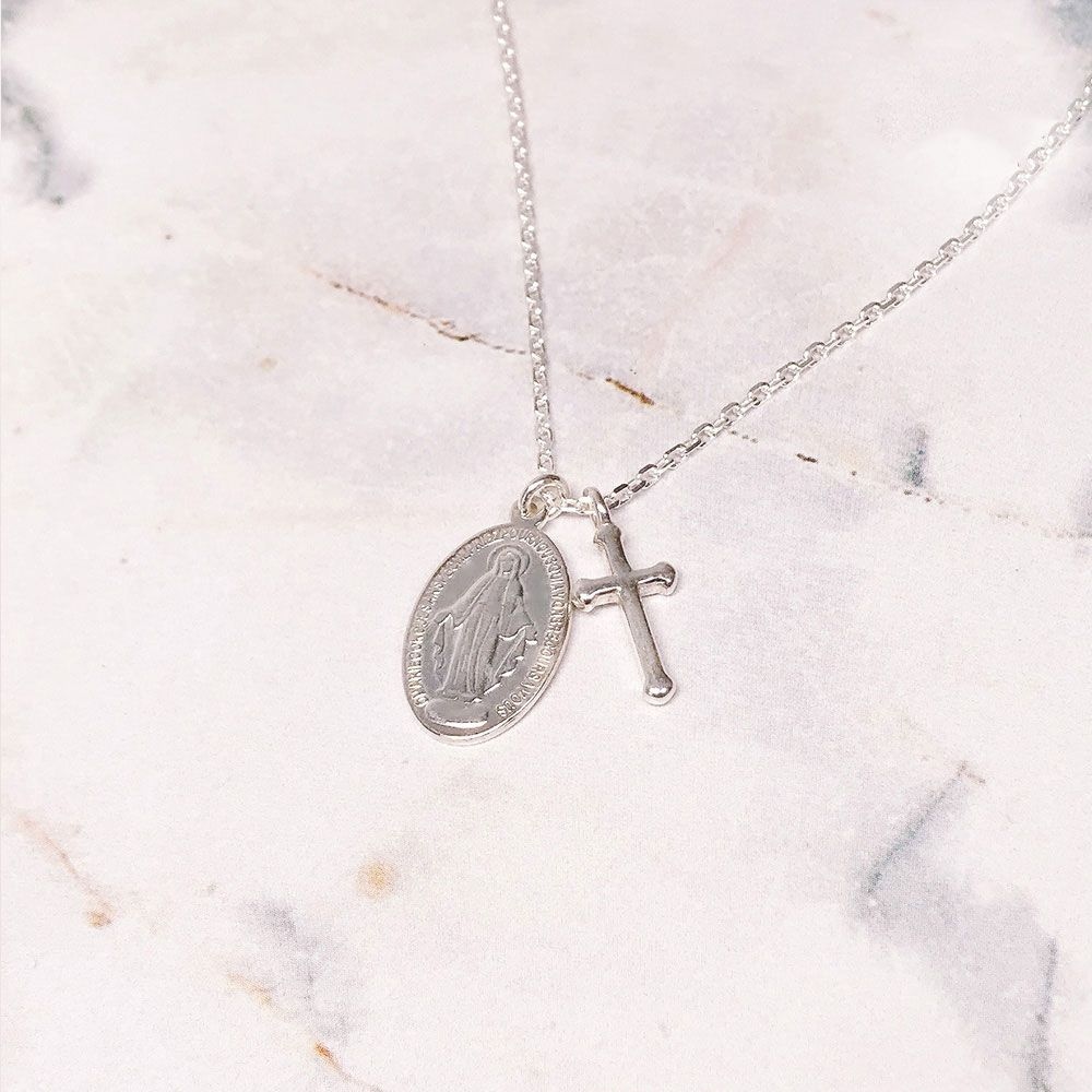 925실버 성모마리아 목걸이 기적의패 십자가목걸이 남녀공용 천주교 전체순은
