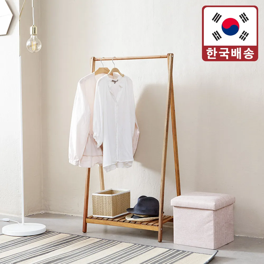 원목 옷걸이 수납 선반 마호가니 소나무 티크 행거 1단