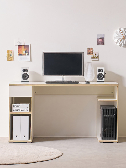 활용좋은 선반수납 원서랍 컴퓨터 책상 1400 크림화이트