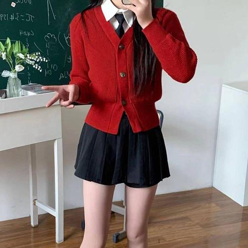 [오너클랜]인기상품 ToB 3버튼 긴팔 빨강가디건 교복셔츠 세라복 교복세트 [WFM0MUP_260204]