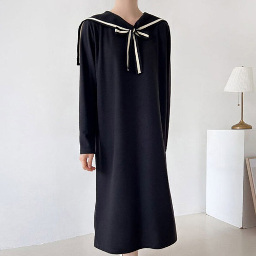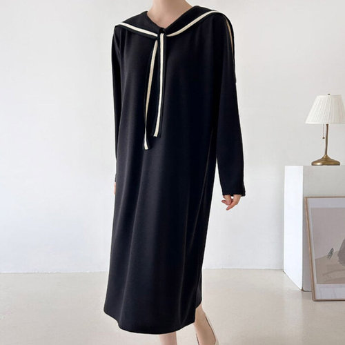 옷자락 / 여자 배색 세라카라넥 반집업 시모 빅사이즈 롱원피스