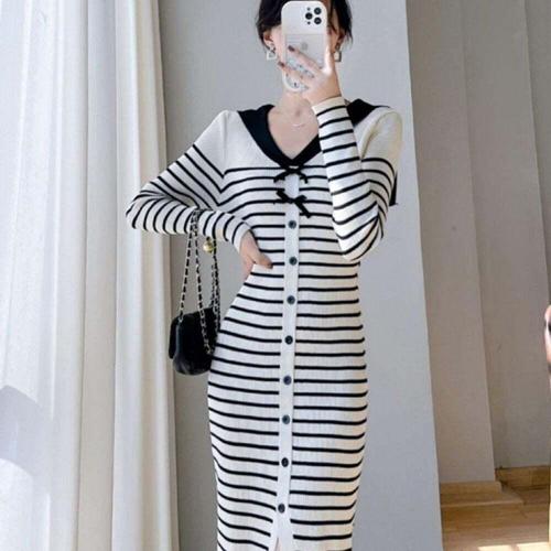 [오너클랜]인기상품 여성용 세라 카라 스트라이프 슬림핏 니트 원피스 데일리룩 [WFLHSCO_260208]