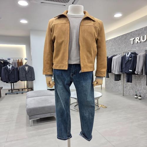 [트루젠]남성 간절기 봄 카멜톤 라이트 브라운컬러 스웨이드 세무 트러커 라이더 자켓 집업 하프 숏점퍼