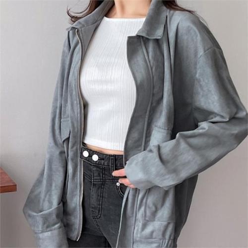 MOSAIRATION 스위트 앤쿨 칼라 스웨이드 집업 여성 아메리칸 캐주얼 오버핏 재킷 Z16