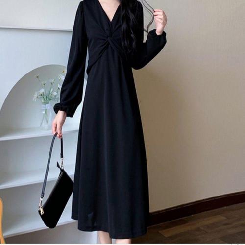 [오너클랜]인기상품 롱슬리브 세미플레어 오피스 원피스 듀얼톤 출근 하객룩 [WFLKRMT_260303]