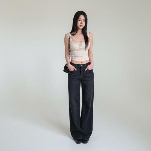 여성 트렌디 와이드 세미 플레어 청바지