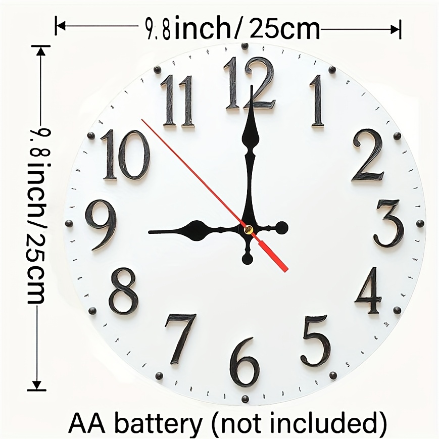TEMU 대형 모던 유럽 레트로 벽시계 - 검은색 아라비아 숫자 & 베이지 페이스, 무소음 쿼츠 , , 인조 목재 프레임 - 거실, 침실, 사무실용 라운드 시계 - (화이트)