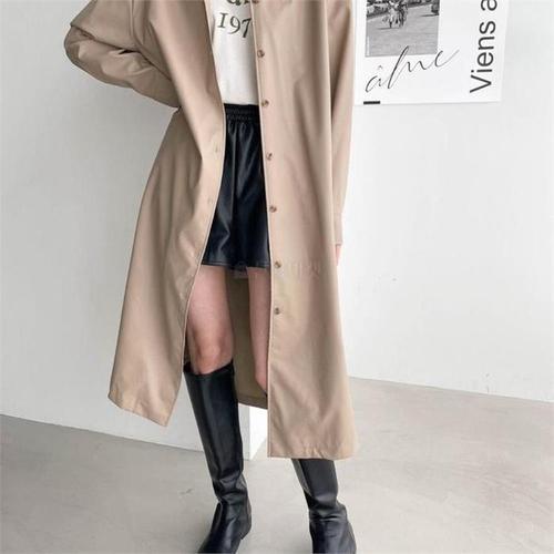[다잇템]여자 세일러카라 가죽 레더 스트랩 롱코트 (8156791A)